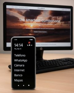 El llamado FocusPhone es un smartphone que mantiene las funciones esenciales como llamadas, mensajería y las aplicaciones útiles que se hayan seleccionado al adquirirlo como WhatsApp o Google Maps, pero elimina o bloquea con una contraseña (según la configuración deseada) las que favorecen el uso excesivo, como redes sociales adictivas, videojuegos, el contenido infinito o las notificaciones constantes.